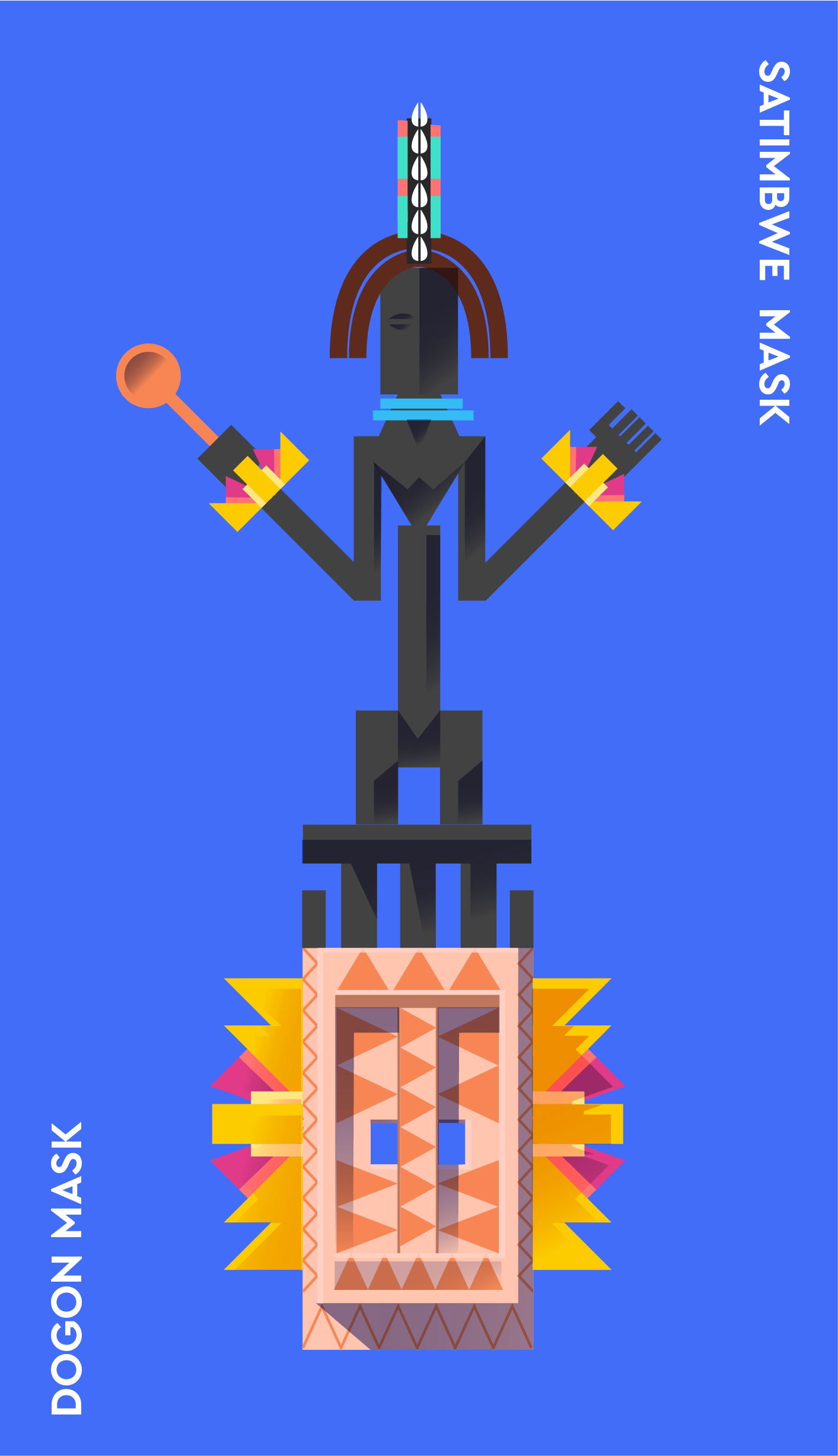 For my research, I made some Illustrations of Dogon masks to feature the beauty of African crafts.